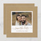Simple and rustic faux kraft paper wedding save the date flat card with gold script and a photo.