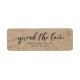 This rustic wedding favour label features the words "spread the love" in dark grey script against a kraft like pattern background. It's great for labelling your jam wedding favour gifts.