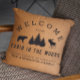 Beautiful, unique, one-of-a-kind rustic, personalised design features a faux leather rustic background, a bear, pine trees and moose, with your family name, the words,: WELCOME TO OUR CABIN IN THE WOODS MICHAEL, ELIZABETH, BRAYDEN & ALEXA THE ANDERSON FAMILY" in black typography on the front and back. Personalise this pillow by adding your own personal information. Makes a great wedding, anniversary, or housewarming gift. Click "personalise this template" to change the names, fonts, and colours to create a unique one of a kind design. What an elegant accessory for your living room, bedroom, or family room. If you need any help with customisation please email me at ybnormalone @gmail.com. Thanks for stopping by www.zazzle.com/WhisperingPines. ©Karen Hall
