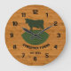 Personalize this rustic wood look wall clock design with a farming motif with your own text. Acrylic wall clock is printed with a dairy cow silhouette on a hill and a faux wood background. Available in your choice or round or square faces.