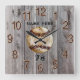 Cool Rustic faux Weathered Wood Personalised Baseball Clock. Type in Player or Coach's NAME and Jersey NUMBER or MONOGRAM or Your Text or Delete it. Cool rustic barn board looking background with vintage baseball clock design. Even the Big Baseball Wall Clock numbers are cool. Great Christmas gifts for baseball lovers or Christmas gifts for baseball players.
