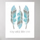 A trio of stylised feathers in earthy tones of blue, teal, grey, and brown, personalised with any text of your choosing.