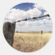 Rustic Fence Landscape Grassy Blue Sky Clouds Classic Round Sticker