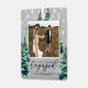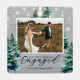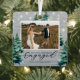 Step into a winter wonderland with our rustic holiday ornaments! Featuring the charm of a grey wooden background, twinkling string lights, and enchanting watercolor Christmas trees. Customisable with a photo, the saying "our first christmas engaged", plus the couples names, and the year.