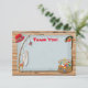 Rustic Fishing Thank You Note Card with fishing pole, net, tackle box, hat and a colourful fish. Old Paper and wood plank background. Hand drawn illustation by McBooboos. Matching invitation available.