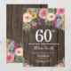 Rustic Floral 60th Birthday Invitation for Women. Watercolor Floral Flower. Rustic Wood Country Vintage Retro Background. Pink, Yellow, Orange, Purple Flower. Adult Birthday. 13th 15th 16th 18th 20th 21st 30th 40th 50th 60th 70th 80th 90th 100th, Any Ages. For further customisation, please click the "Customise it" button and use our design tool to modify this template.