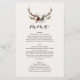 Rustic floral and stag antlers wedding menu