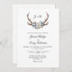 This chic boho rustic wedding invitation with antlers features the monogram initials of the bride and groom framed by stag antlers which are decorated with a watercolor dusty blue and cream floral bouquet. Please contact me through Zazzle Chat if you need design tweaks, more matching products, or other colorways.
