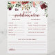 This rustic floral baby predictions and advice cards are perfect for a summer baby shower. The design features burgundy, pink and blush watercolor flowers with green leaves in a brownish stained background.