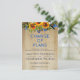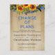 This rustic CHANGE OF PLANS wedding postponement or wedding cancelled postcard has a fresh country style. This fun barn wood-themed design features a light-coloured wood with pretty boho sunflowers and feathers hanging in the top centre. Personalise with your name and information. Other fonts and colours are available.