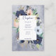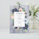This wedding reception card design features a wreath of tan, navy, peach blush, tan, and white florals on a navy blue watercolor splash background. It also features nautical elements like rope, starfish and an anchor. Perfect for the destination, beach, or water side wedding. Created by Simply Farmhouse Press, it's part of the Rustic Floral Beach Nautical Wedding Suite.