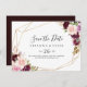 This rustic floral botanical foliage horizontal wedding save the date is perfect for a simple wedding. The design features beautiful and colourful hand-drawn flowers and foliage, elegantly arranged into attractive bouquets, adorning gold geometric frame.