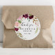 Rustic Floral Botanical Thank You Wedding Favour Classic Round Sticker