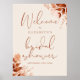 This elegant rustic floral bridal shower welcome sign can be personalised with your information in chic terracotta typography. Designed by Thisisnotme©
