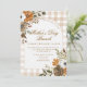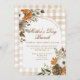 Rustic Floral Brown Copper Tan Mother's Day Brunch Invitation - A beautifully elegant and feminine Mother's Day Brunch invitation in tan and white gingham pattern with lovely copper and brown floral accents and a mix of copper brown script calligraphy and stylish block text. The reverse side of the invitation has a matching hand painted tan gingham pattern. Personalise with your event details. All text is editable. Also available as an instant digital download for easy sending via text, email or social media.
