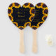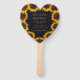 Rustic modern traditional style wedding save the date heart fan featuring a beautiful sunflower border over a dark midnight navy blue background. ++++++++ Ideal for your summer or autumn fall elegant outdoor floral garden, farmhouse barn, or backyard themed weddings. Personalise it with the bride's and groom's names and wedding date!