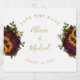 Rustic modern traditional style wedding save the date dark sparkling wine label featuring beautiful sunflower and burgundy roses bouquets over a clear white background. ++++++++ Ideal for your summer or autumn fall elegant outdoor floral garden, farmhouse barn, or backyard themed weddings. Personalise it with the bride's and groom's names and wedding details on both sides!