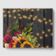 Rustic country vintage traditional style personalised guest book with big yellow gold sunflowers, red burgundy marsala roses, and strings of twinkle lights on a dark brown barn wood background and with an elegant gold typography script. ++++++++++++ Ideal for summer or autumn fall | elegant vintage rustic country | outdoor garden backyard themed weddings.