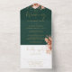Rustic Floral Emerald Gold Details RSVP Wedding All In One Invitation