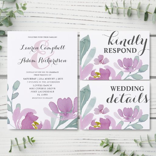 Rustic and elegant is this purple envelope. Featuring a delicate watercolor pattern of flowers and foliage. Include this as part of your essential wedding stationary. Please see other items in this collection.
