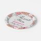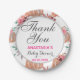 Rustic fall autumn floral rose pumpkin background "Thank You" paper plate for a baby shower. This cute sticker has elegant dark grey and hot pink text. Personalise by adding your name and baby shower date. You can change the text colour and font style using the customise option.