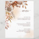 Delicate watercolor florals in warm, earthy tones create a sense of rustic elegance, setting the stage for a truly unforgettable dining experience. This customisable template offers a beautiful backdrop to showcase your carefully curated wedding menu, enticing guests with its understated charm and sophisticated design.