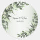 Rustic Floral Greenery Eucalyptus Leaves Classic Round Sticker. Elegant, beautiful, modern design. Easy to be personalised. Fonts style, size and colours can be changed. Matching items available.