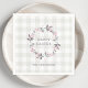 Custom-designed Easter napkins featuring rustic floral on farmhouse style buffalo check design.