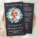 Modern Floral Sympathy Funeral Prayer Cards. This simple yet elegant memorial prayer card features a modern forget me not flower design on rustic chalkboard slate. Front "In Loving Memory" Personalise this memorial funeral prayer card with your loved ones photo, name & dates, and sentiment. Back ~ 'Miss Me' Poem, which can be personalised, please reach out if you would like a design with a specific poem other than. This memorial prayer card will be a treasured keepsake, for funeral services, and celebration of life. COPYRIGHT © 2020 Judy Burrows, Black Dog Art - All Rights Reserved. Rustic Floral Memorial Prayer Card Funeral Photo