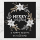This rustic floral "merry everything" christmas wine label makes the perfect cute holiday gift. The design features a white and tan poinsettia flower wreath on a black background with the festive phrase "merry everything and happy always" and a small heart. Personalise the label with your name.