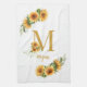 Rustic chic modern elegant floral monogrammed personalised kitchen towel with pretty watercolor bright yellow burnt orange sunflower and sage green greenery bouquets. ++++++++++ A cute keepsake gift for her - mother, daughter, sister, grandma, bride, bridesmaid, wife, or best friend on a birthday, anniversary, Christmas, bridal shower, wedding, or new home housewarming.