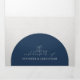 An elegant design with a rustic chic touch, featuring branches, greenery, eucalyptus, and flowers in fall tones including some blush surrounding the invitation information over a navy blue background. This all-in-one sustainable invitation would save you money, no need to include RSVP envelopes, your guests will cut the last panel and mail it back to you as a postcard.