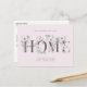This elegant floral change-of-address postcard features pretty flowers and rustic lettering. On the front, the word "Home" is handwritten in charcoal grey lettering and adorned with floral bouquets. The delicate blush pink background is editable if desired. Add your names and new address to the front, then on the back write a custom message and/or housewarming invitation to recipients.