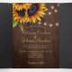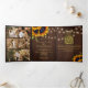 Chic rustic country elegant summer or autumn fall wedding stylish budget all in one tri fold photo collage invitation template with scanning QR CODE to online RSVP and details on brown barn wood featuring beautiful sunflowers bouquets and strings of twinkle lights. ++++++++++++++++++++ The invitation is suitable for modern elegant rustic country outdoor backyard, barn, or farmhouse weddings. +++++++++ Easy to personalise with 6 engagement pictures, your text, and your automatically generated QR code to your website.