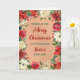 Merry Christmas for sister card with rustic watercolor flowers and vintage brown paper pattern.