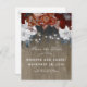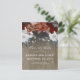 Plum and burgundy flowers, string lights and old wood barn style rustic save the date postcards