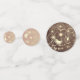 Add a romantic rustic touch to your wedding table decor with this elegant floral confetti featuring a wood grain background, glowing string lights, and gold flower sketches. Perfect for receptions, bridal showers, or rehearsal dinners.