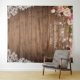 Rustic Floral String Lights Wood Wedding Backdrop Tapestry