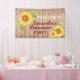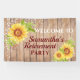 Stylish Retirement party banner with a brown wood / wooden back ground , watercolor yellow floral sunflowers and string lights. A great banner to hang to welcome guests to the to party. Just add the name to personalise. All text can customised if needed so ideal for any party celebration such as birthdays and anniversaries.
