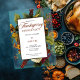 An ethereal floral bouquet in shades of winter white, gold, orange and dark red with greenery on a white, dusky gold and dark teal edged panel over a clear background invites your guests to what is sure to be a memorable rustic "Thanksgiving Dinner" elegant occasion. Composite design by Holiday Hearts Designs (rights reserved).