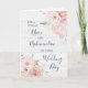 An elegant rustic wedding day congratulations card for your niece and nephew in law with delicate blush pink watercolor flowers, pastel greenery, and a country wood background.
