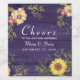 Elegant, modern, wood rustic purple wedding wine label with watercolor flowers, sunflowers and greenery.