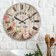 Rustic Floral Wood Custom Family Name Farmhouse Round Clock