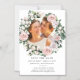 An elegant Boho Chic Save the Date card features a blush pink floral wreath.It is the open and airy leaves and greenery that give it its Boho vibe. This rustic design is perfect for an summer or spring wedding. It frames your favourite couple's photo. Save the Date, your names, wedding date and location are on the front. This save item is part of the Summer Romance collection. It contains many DIY wedding stationery templates that will let you easily create a beautiful wedding invitation suite. You should see a link to it on this page. If you don't see the link or need help with an item, please contact me.