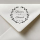 Custom-designed wedding stamp featuring modern hand calligraphy with hand-drawn floral wreath. Personalise with bride and groom's names and wedding date. Perfect for rustic, country, and boho themed weddings.