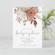 Rustic Autumn Florals Terracotta Thanksgiving. Elegant flowers and berries and grasses in soft terracotta brown and cream shades flow down from the top. Thanksgiving Dinner is in a set handwriting style script. Easily personalise the rest of the text to your own details.