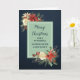 Merry Christmas for goddaughter and her family card with rustic country design, dark blue background and winter foliage with poinsettias.