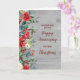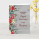 Happy anniversary on Christmas card with rustic country design and winter foliage with poinsettias.