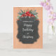 Happy christmas birthday Christmas card with rustic country design and winter foliage with poinsettias.