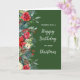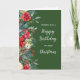 Happy christmas birthday Christmas card with rustic country design and winter foliage with poinsettias.